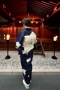 私は葡萄柄のお着物に塩瀬の帯🩵