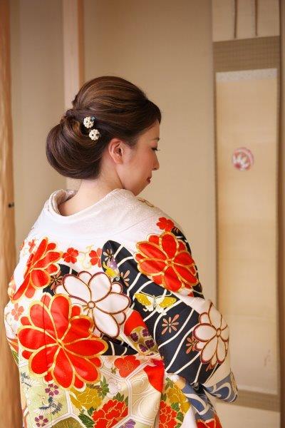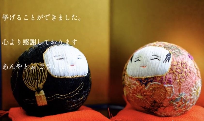 婚礼衣装を加賀刺繍で縫った金澤祝言花手毬こぼしです。
