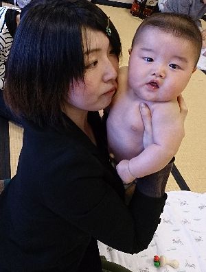 首も大分、すわって、話しかけるとニコッと笑い返したりもしてくれます。