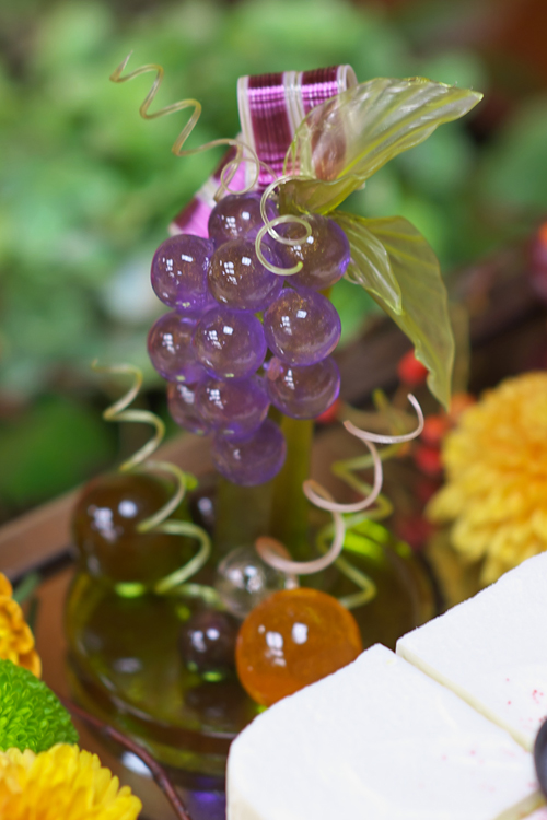 飴細工の透き通るようなツヤツヤのぶどうが愛らしいことです。