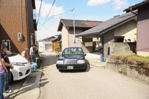 ご近所のかたがたの温かい祝福の中、金沢から加賀へとお運びです。