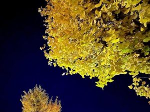 黄色の葉のイチョウが赤っぽくみえて思わずスマホ取り出して撮りました。
