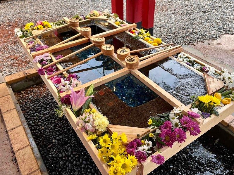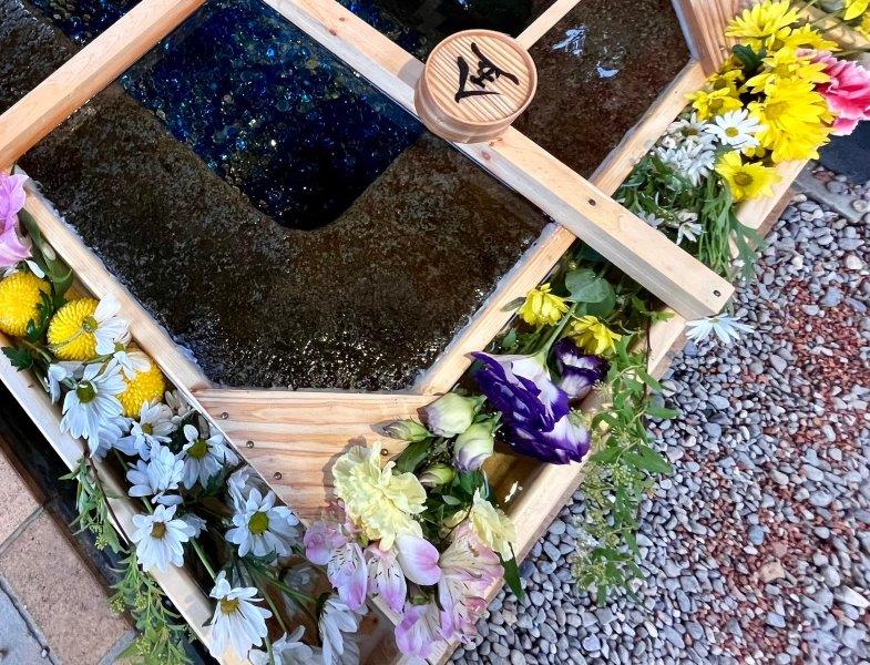 石浦神社さんの花手水舎に木製のフレームができていました。