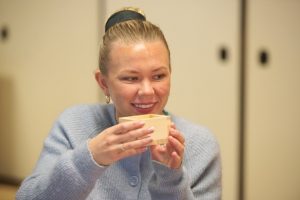 「紅白の雑煮膳」を召し上がるサクさんです。