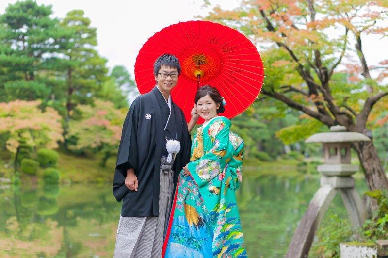 金沢神社さん挙式後に兼六園でロケーションフォト