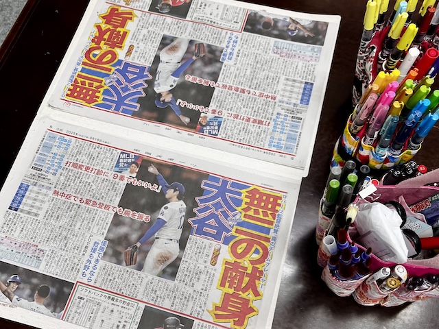 大谷翔平選手の新聞の上でプレー(手習い)って