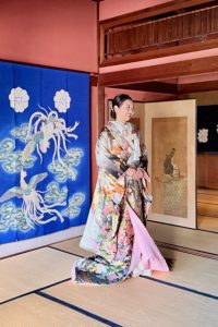 鮮やかな友禅のれんは靖人さんの曽祖母様の