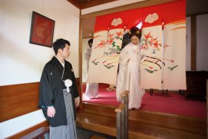 ご宿泊でお打掛をお飾りされたお部屋で過ごされました。