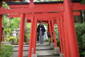 稲荷鳥居を抜けてロケーションフォトへとご出立です。