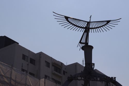元町で。このオブジェは夜になると赤い鳥になるのだとか。
