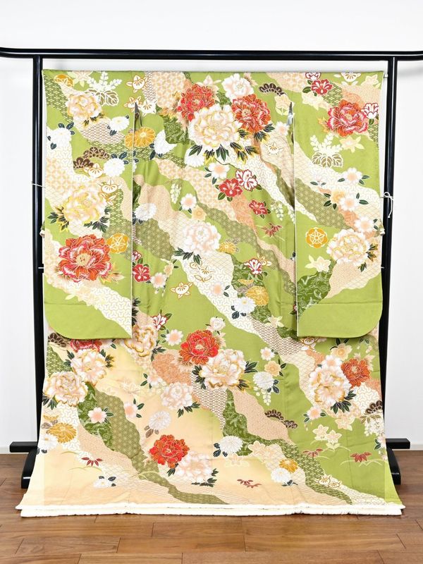鴇⾊ 爛寿正倉院 本⼿描友禅 ⾦銀縁取