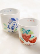 デザイン画を九谷焼職人さんが茶碗に描いた