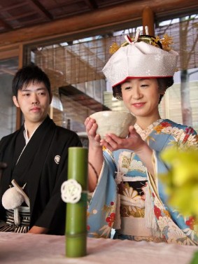 茶婚式では、仲良く互いに敬い