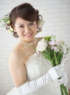 千種さんおめしのシャルムのドレスは胸元に パールレースがあしらわれている 上品なバルーンタイプです。 野原で摘んできたようなトルコ桔梗の 生花ブーケは優しげで 千種さんの個性にもよくお似合いです。 柔らかい光をとりこんだ写真は お二人の新しい出発にふさわしいお写真になりました。